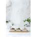 Tablett aus Bambusholz mit 3 quadratischen Schalen aus Porzellan, 4-tlg. Zum Servieren kleiner Portionen. Ideal für Vorspeisen, Gewürze, Saucen, Dips, Marmelade usw. Schalengröße: 8x8x2,6cm, Inhalt: 90ml. Tablettgröße 28x10x1,2cm. Das Tablett ist nicht spülmaschinengeeignet.