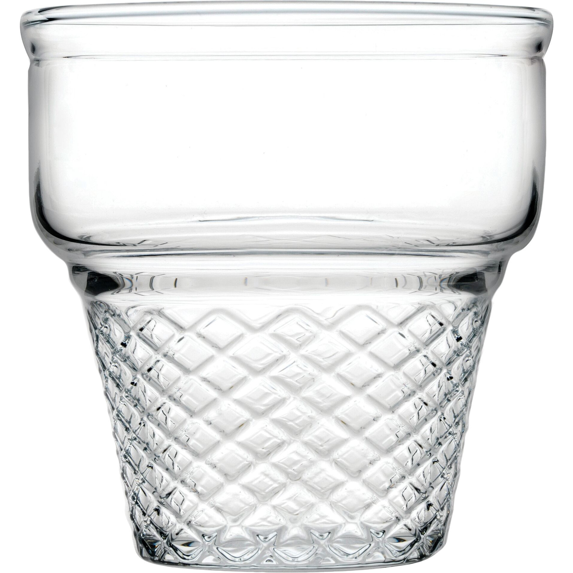 ØxH in cm: 8,5x8,6 Inhalt in ml: 245 Eisglas in Eiswaffeloptik. Stapelbar.