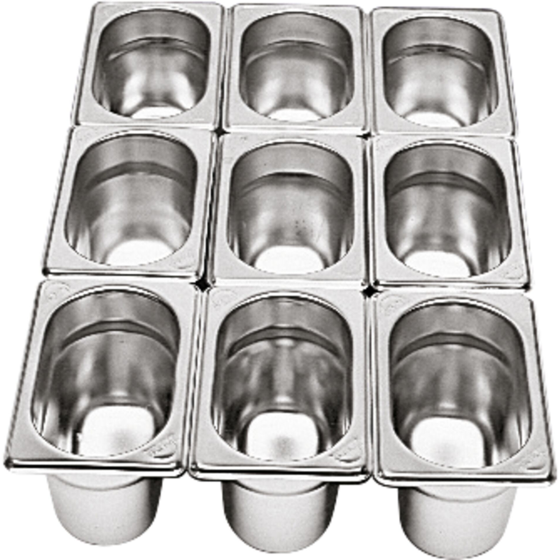 GN-Norm: 1/9 Tiefe(mm): 65 Inhalt (Liter): 0,8 Chrom-Nickel-Stahl 18/8, rostfrei. GN-Norm: 1/9 Tiefe(mm): 65 Inhalt (Liter): 0,8