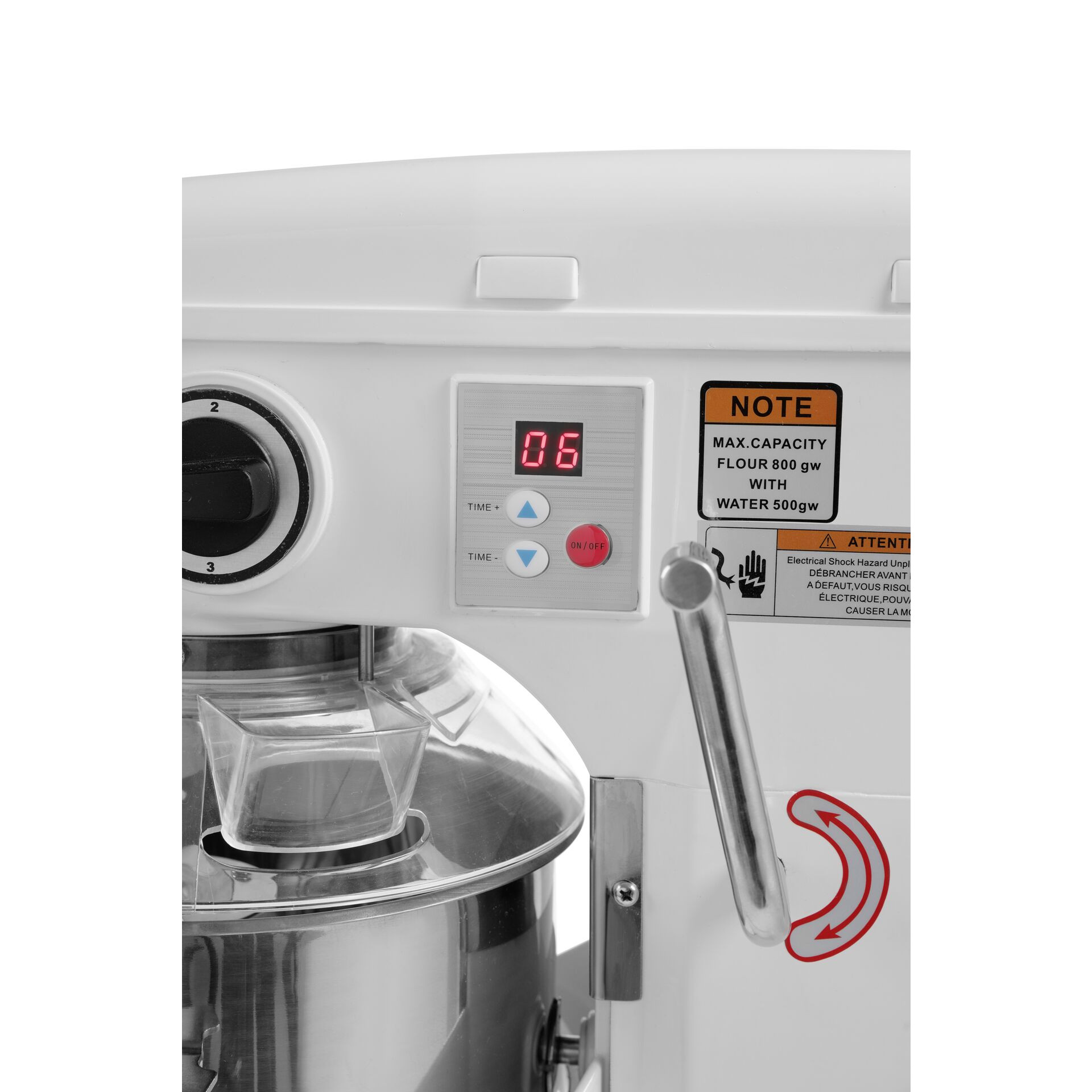 Hochwertiges Gehäuse aus Gussstahl, Spritzgussdeckel und Schüsselabdeckung aus Kunststoff. Hochleistungsschneckenantrieb und -zahnräder. Mehrere eingebaute Sicherheitsabschalter sorgen für höchste Sicherheit und bestmöglichen Überlastschutz. Inklusive Schüssel, Schläger, Schneebesen und Teighaken aus Edelstahl. Übersichtliches digitales Bedienfeld. Mit kippbarem Mischkopf zur einfachen Reinigung. Automatische Abschaltung, wenn der Kopf oder die Schüsselabdeckung angehoben wird. 3 einstellbare Geschwindigkeiten: 128/ 252/ 545 Umdrehungen pro Minute. Volumen: 7 Liter.