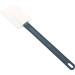Stielschaber aus Silikon/Kunststoff mit Aufhängeöse. Griff aus schwarzem Kunststoff. Hitzebeständig bis 260°C. Gesamtlänge: 35 cm. Maße Silikonblatt L: 11,5 cm, B: 7 cm. Spülmaschinengeeignet.