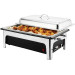 Edelstahl 18/10 poliert, komplett mit GN-Einsatz 1/1x100 mm tief, Deckel und 2 Deckelhalterungen, elektrischem Wasserbad aus Polypropylen, hitzebeständig. 13,5 Liter. Mit Eurostecker-Anschluss!