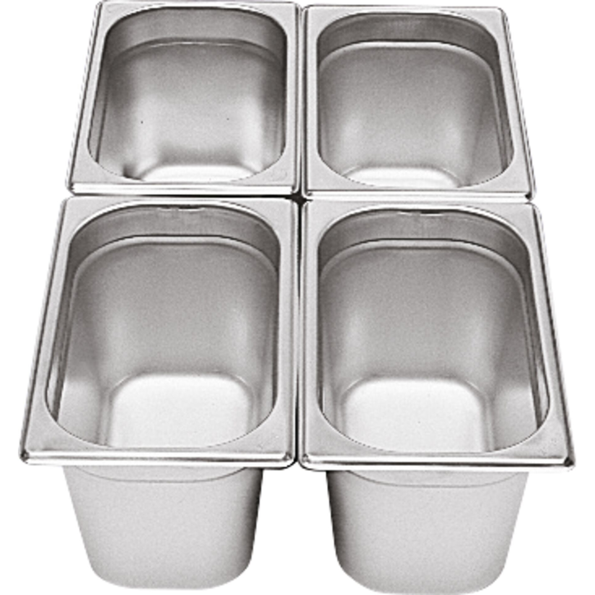 GN-Norm: 1/4 Tiefe(mm): 65 Inhalt (Liter): 1,8 Chrom-Nickel-Stahl 18/8, rostfrei. GN-Norm: 1/4 Tiefe(mm): 150 Inhalt (Liter): 4,0