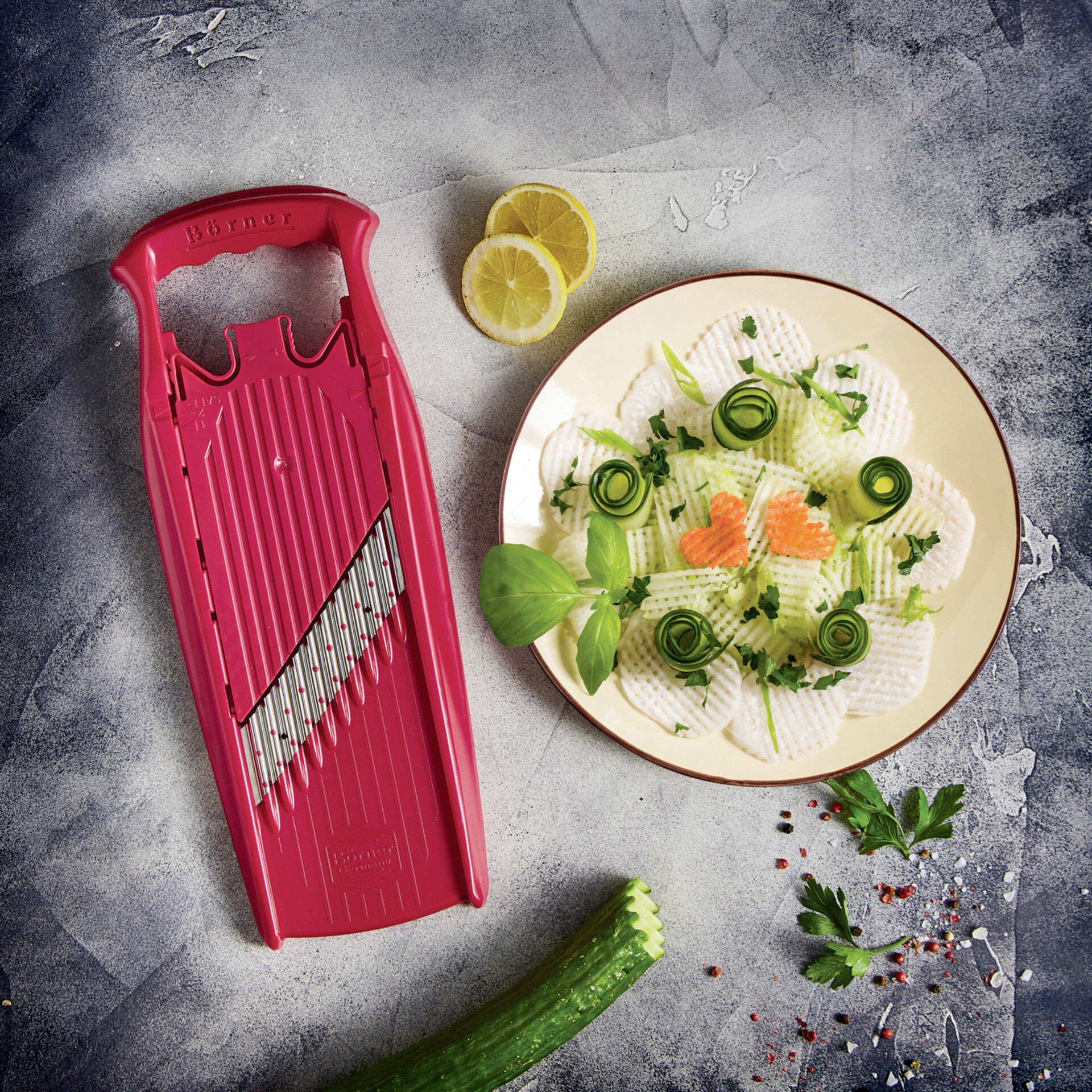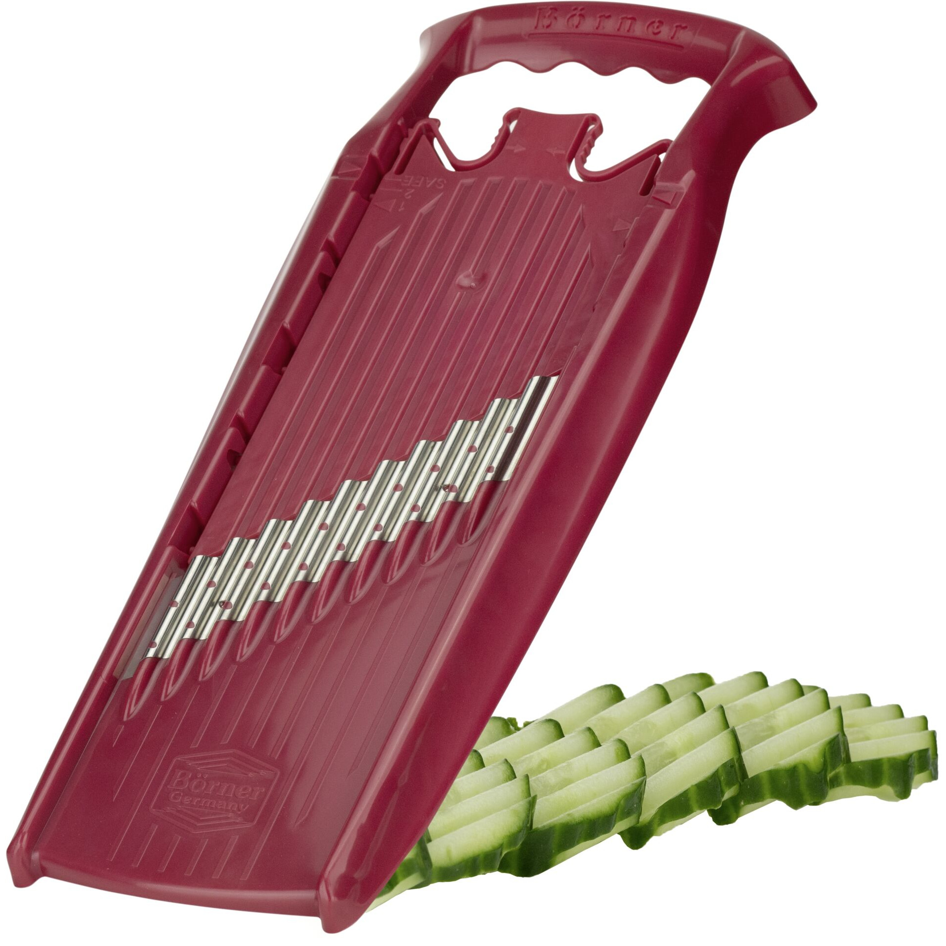 LxBxH in cm : 34x12,5x3 ohne Sicherheitsfruchthalter Schneidet Gemüse in Wellenform.