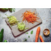 Vierkantreibe aus Edelstahl. Durch den Scheibenschneider, Julienne-/Rohkostschneider, die Reibe und Rösti-Reibe, sind vier Funktionen in einem Produkt vereint. Lieferumfang: Edelstahlreibe, innenliegende Auffangschale aus Kunststoff und Fruchthalter. BxHxT: 13x26x13cm.