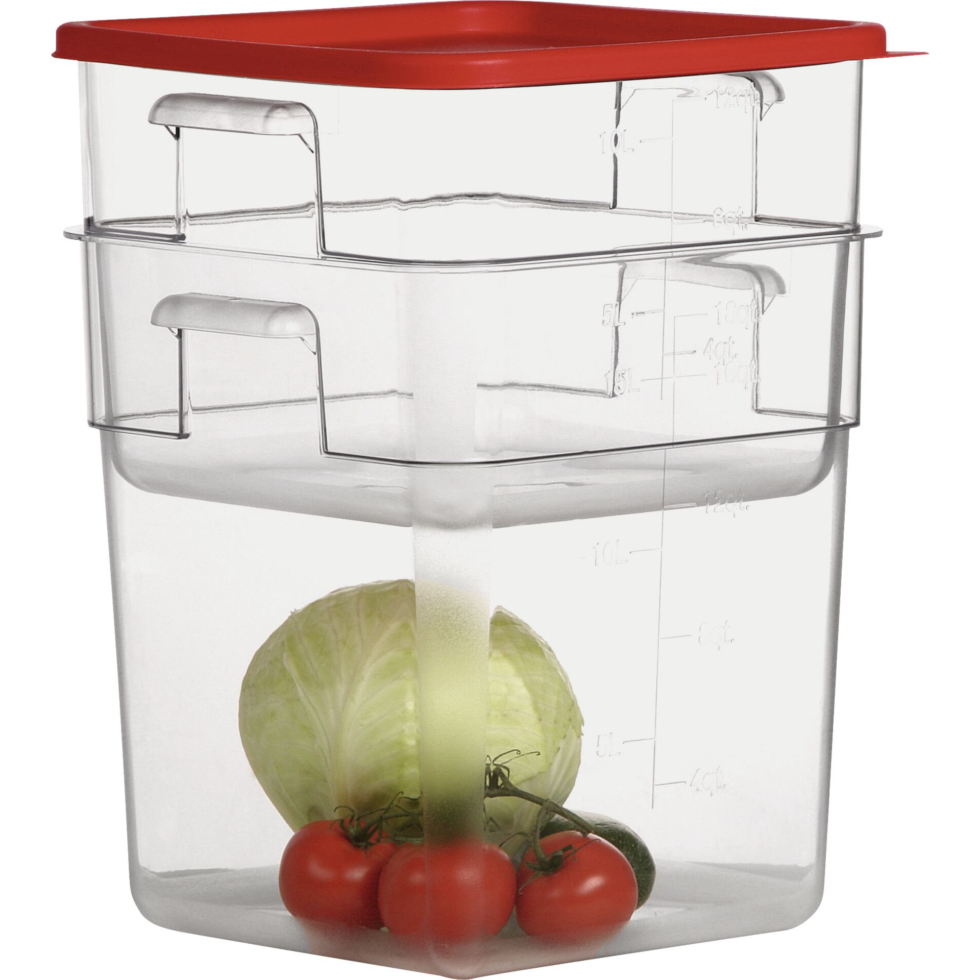 Polycarbonat mit seitlichen Griffen und Skala. Stapelbar. Passenden Deckel bitte separat bestellen. LxBxH in cm: 26,5x26,5x32 Inhalt in Liter: 15